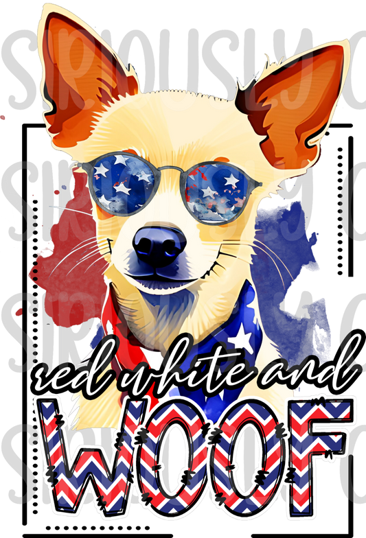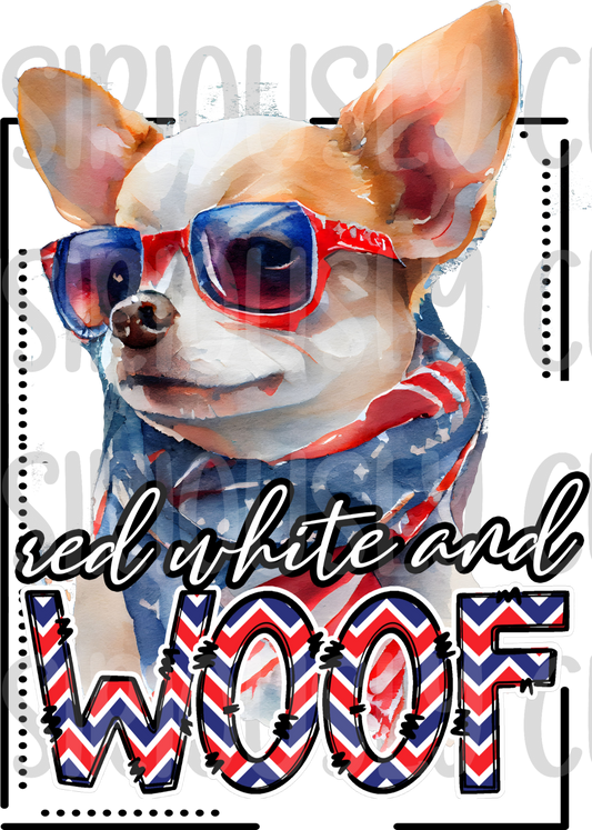 red white and woof Chihuahua