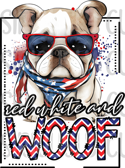 red white and woof bulldog